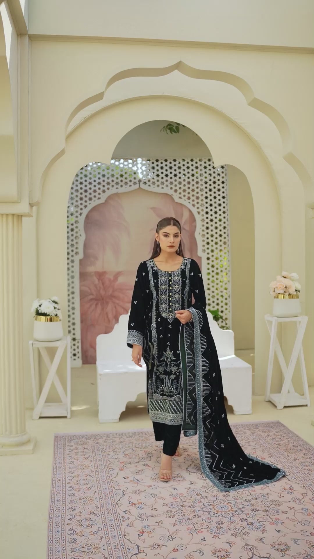 Embroidered Velvet Dupatta with Sequence 2.5M